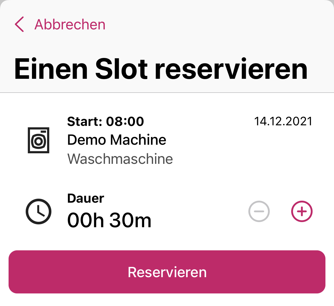 - Ihre Reservierung: Die Maschine ist für Sie reserviert.